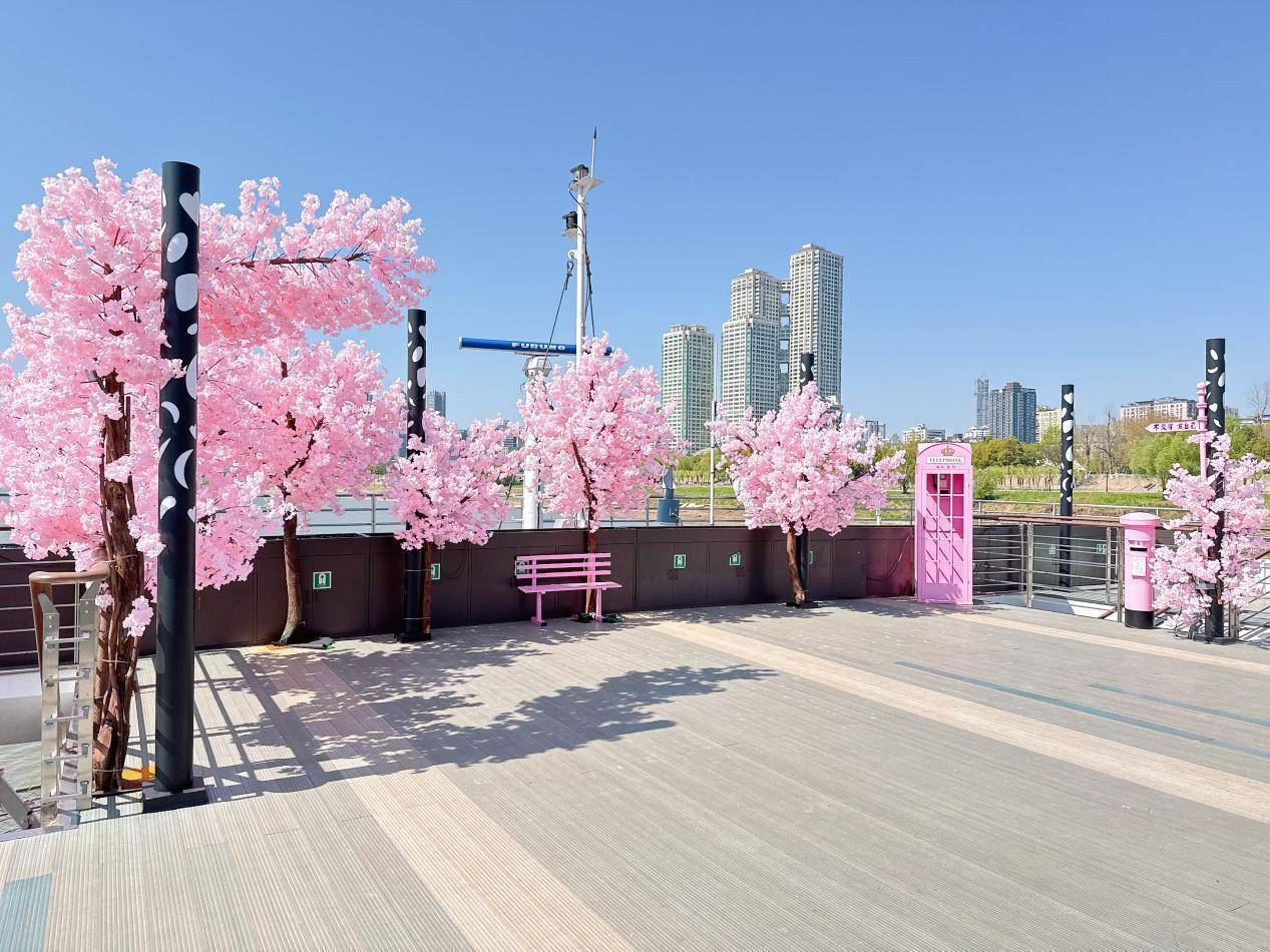 本届水上樱花节亮点纷呈。在场景焕新方面,“两江晴川”“利记号”“东湖号”等游船将披上春日限定装饰,以长江为背景,以“江汉揽胜”游线为脉络,打造步步皆景的赏樱新空间。红巷码头“两江晴川”游船全新推出樱花大道,樱花专属航班上设置樱花造型装置和城市地标布景,游客可在移步换景中感受“樱随江动、景随船移”的视觉盛宴。