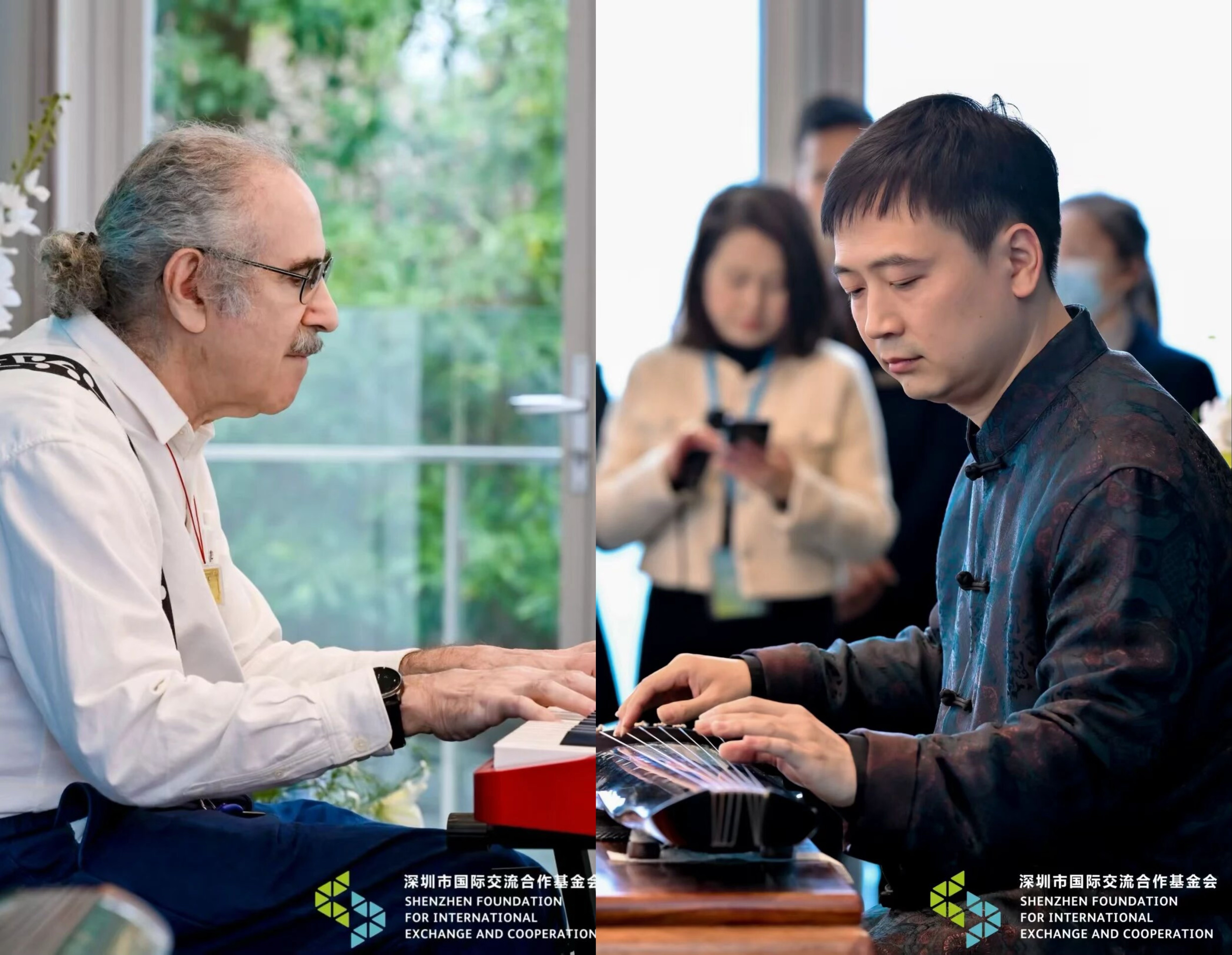发布会在一场别开生面的艺术展演中拉开帷幕。深圳市古琴昆曲研究会执行会长刘剑与美籍音乐人Don Rechtman联袂呈现古琴与钢琴合奏《半山听雨》,随后古琴独奏《山海情》与深圳交响乐团弦乐四重奏演绎的莫扎特《G大调小夜曲》相继上演。东西方乐器对话,传统与现代交融,为现场嘉宾带来一场跨越时空的文化盛宴,也寓意着民间外交在文明互鉴中寻找共鸣。