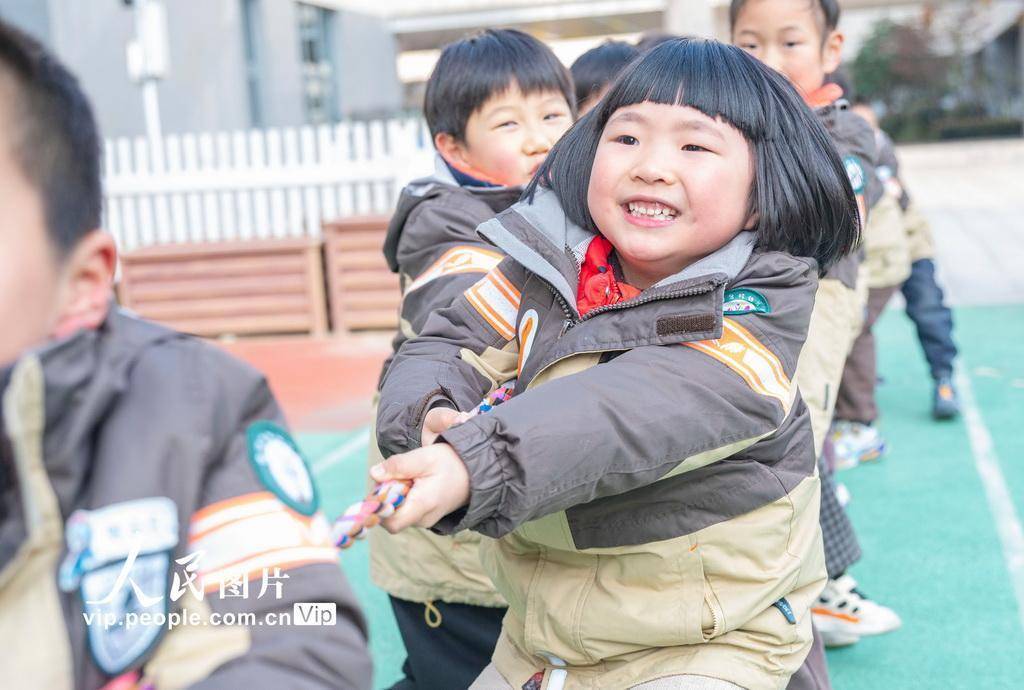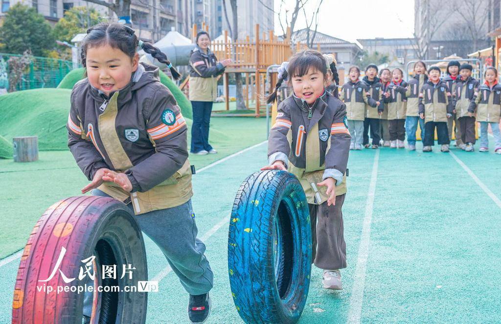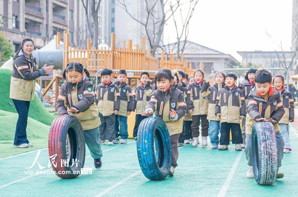 2026年3月6日,江苏省宿迁市宿城区南师附中宿迁分校幼儿园积极开展阳光户外活动,让孩子们在快乐运动中强身健体。徐江海摄(人民图片网)
