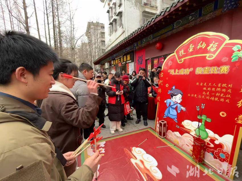 在古色古香的泮池边,一场现代版的“投果定缘”热闹上演。